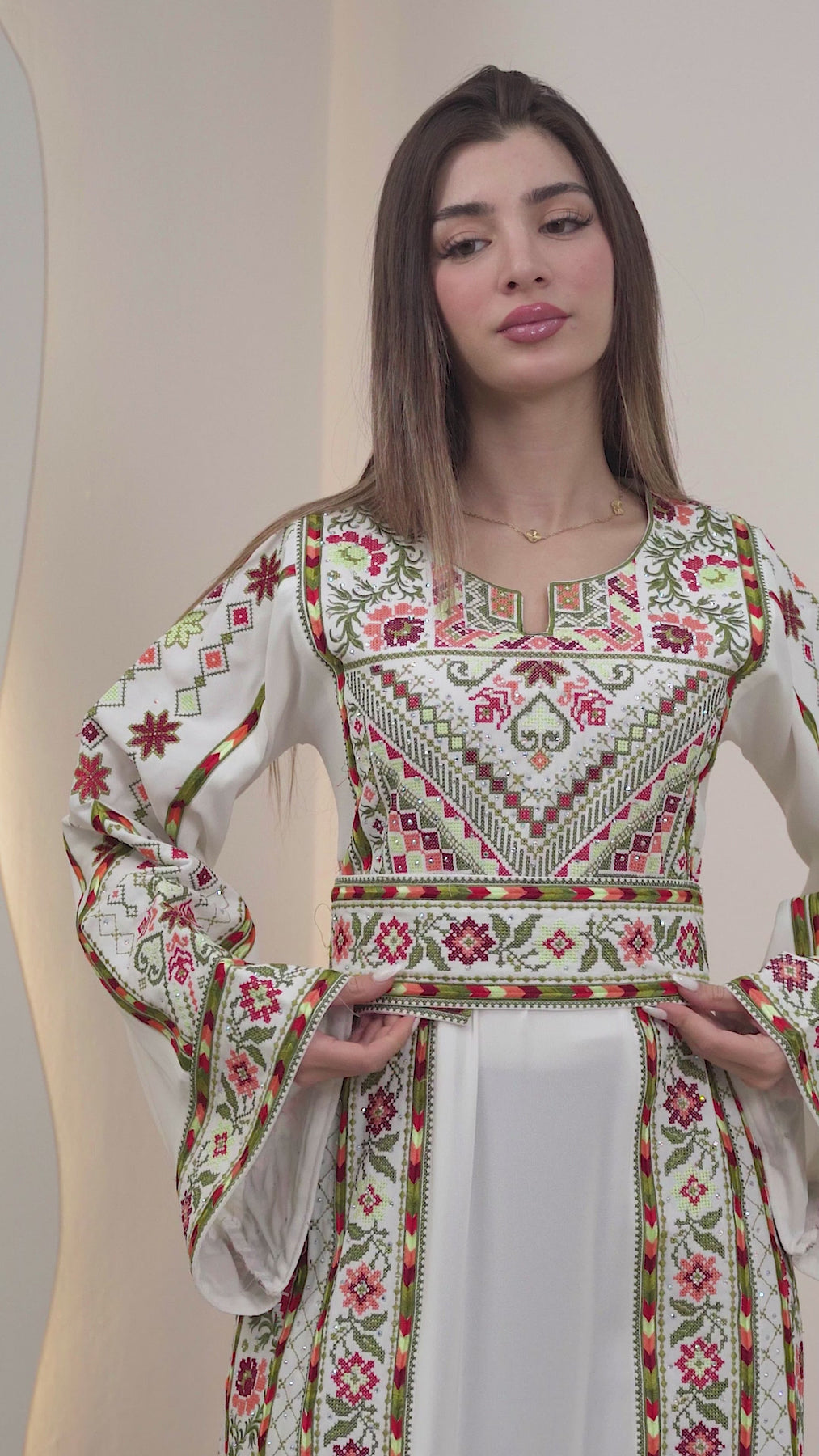 Embrace understated elegance with our Pride2 Thobe Dress, a refined Palestinian-style creation that radiates grace through its pristine white foundation adorned with vibrant embroidered accents. Each colorful thread is carefully placed to showcase authentic traditional artistry, creating a harmonious blend of simplicity and sophistication. Crafted from premium materials, this high-quality garment offers exceptional comfort without compromising on style. The versatile white base pairs effortlessly with any occasion, from intimate family gatherings to grand celebrations. Invest in a timeless piece that captures the essence of Palestinian heritage with understated beauty and cultural pride.